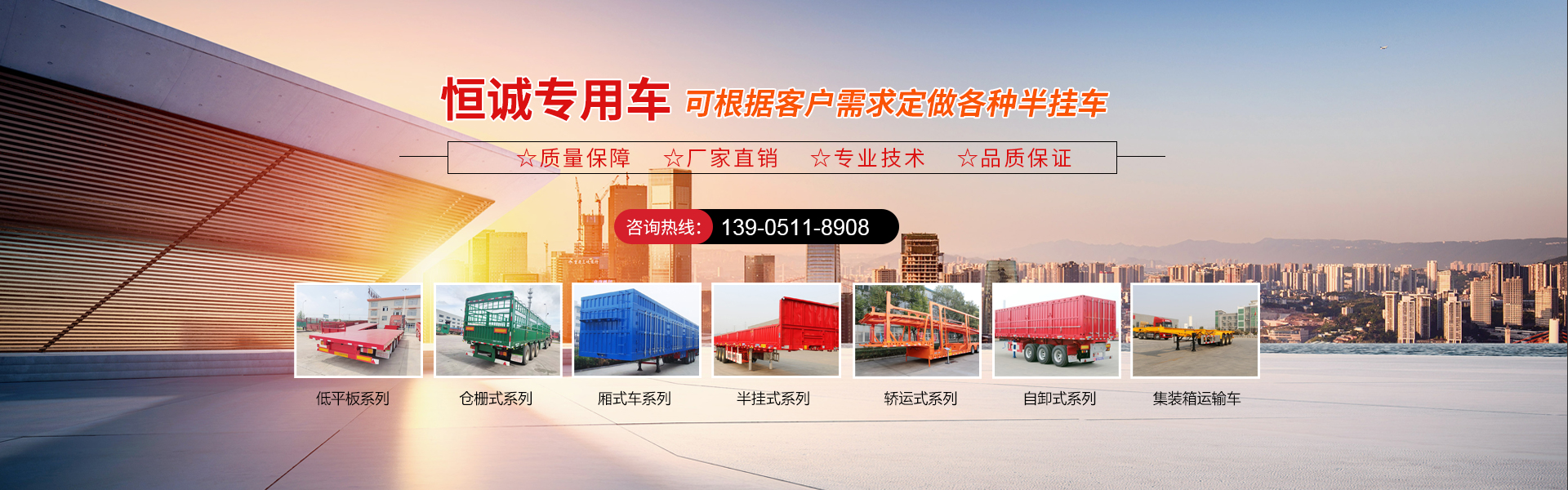 現(xiàn)有半掛車(chē)生產(chǎn)線(xiàn),自卸車(chē)生產(chǎn)線(xiàn),低平板生產(chǎn)線(xiàn),轎運(yùn)車(chē)生產(chǎn)線(xiàn),垃圾車(chē),洗掃車(chē),清洗車(chē),超大件運(yùn)輸及特種車(chē)輛等100多種產(chǎn)品,可按需定制化生產(chǎn),滿(mǎn)足個(gè)性化需求。全方位服務(wù)以及售后優(yōu)勢(shì)